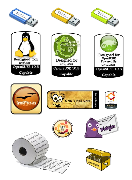 En la pagina web http://www.openstickers.com encontramos dos libros completos en formato pdf con pegatinas de software libre GNU.