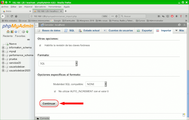 4.1- Seleccionamos el archivo usuariodebian-2016.sql y pusalmos en Arbrir