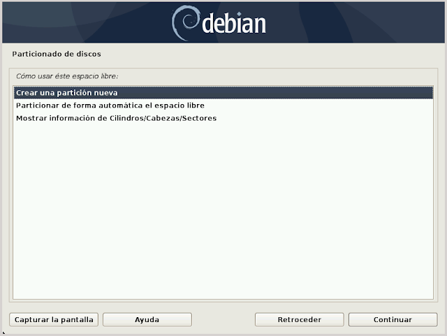 NOTA: Intentar hacer una guía exacta de este punto de la instalación es muy difícil ya que cada ordenador tiene un disco duro de diferente tamaño, de diferente tecnología (IDE, SCSI, ATA, S-ATA) y en muchos casos Debian no es el único sistema operativo existente en dichos ordenadores.